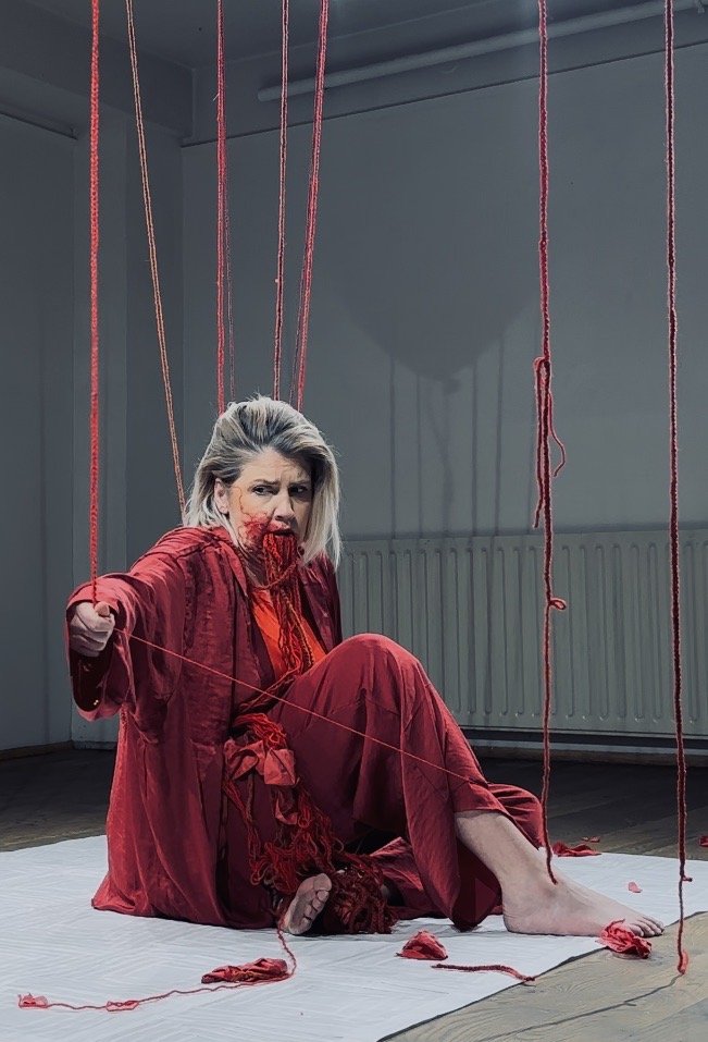 The current thrust of my performance work aligns fiber arts with contending with complex post-traumatic stress disorder (C-PTSD) and intimate partner violence- diversifying the definition of the term, ‘women’s work.’ The World Health Organization (WHO) reports that one in three women have suffered as victims of intimate partner violence (IPV) (WHO 2021). These staggering statistics demand recalibrating the definition of ‘women’s work’ to include dealing with IPV in all its forms. The term is commonly used in reference to the unpaid labor that a woman performs within the home – housekeeping, child rearing and, domestic arts such as sewing, knitting, crochet and other craft activities.